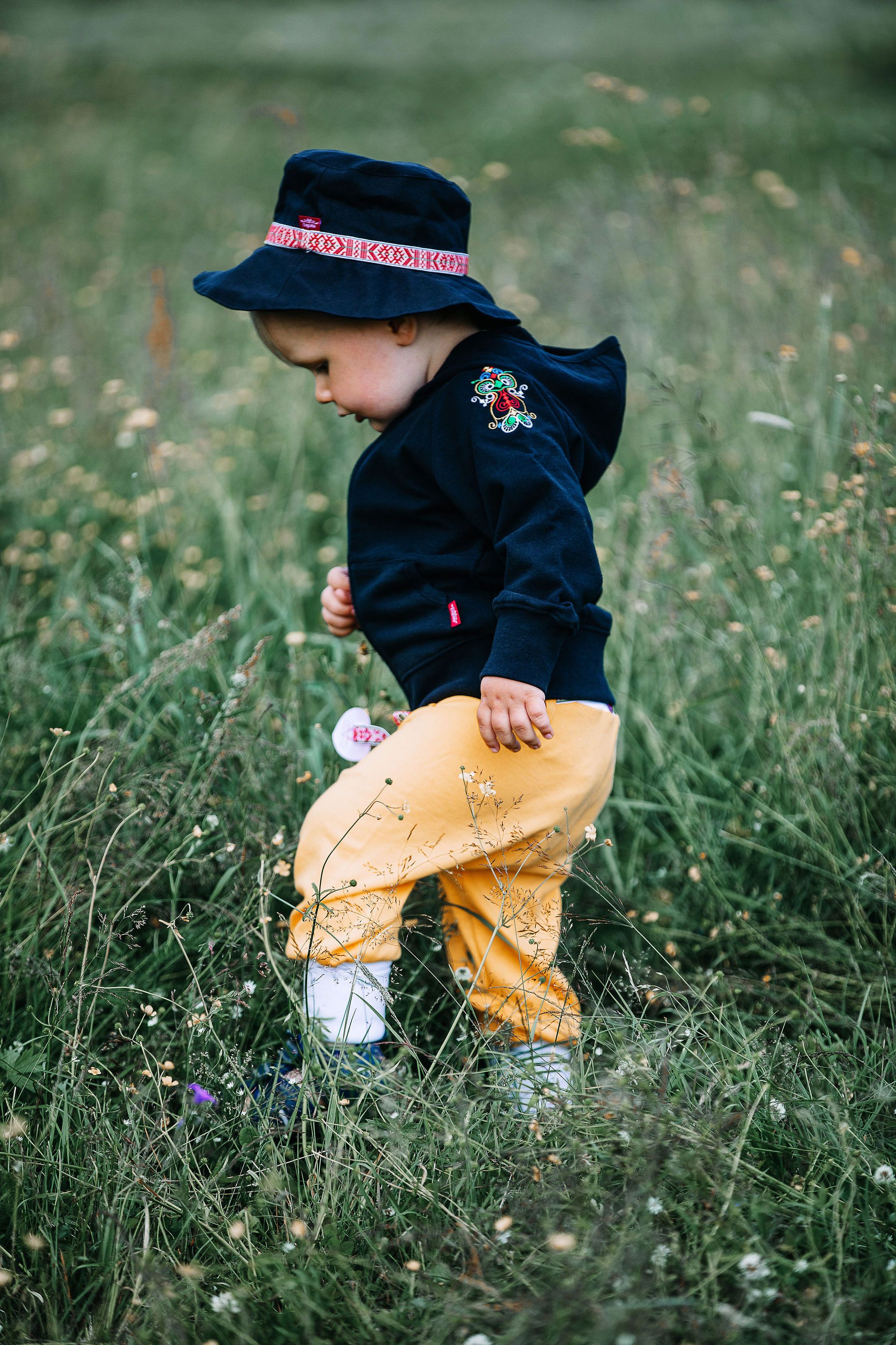 Little Dalom breeches are an interpretation of Dalarna’s folk costumes through the ages. It is made in Swedish jersey with wide, comfortable cuffs in both the waist and legs. Removable sash with hearts is our baby-friendly answer to lap robes. Suitable for parties and everyday wear all year round.